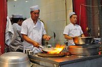 Chefs aan het werk met hun wokpannen