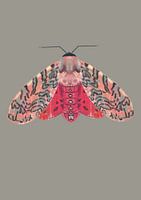 Deze roze rode mot op gekleurde achtergrond is er 1 uit een serie van 14 mot illustraties. Heb je wel eens op de kleuren en patronen van motten gelet? Prachtig toch?!
