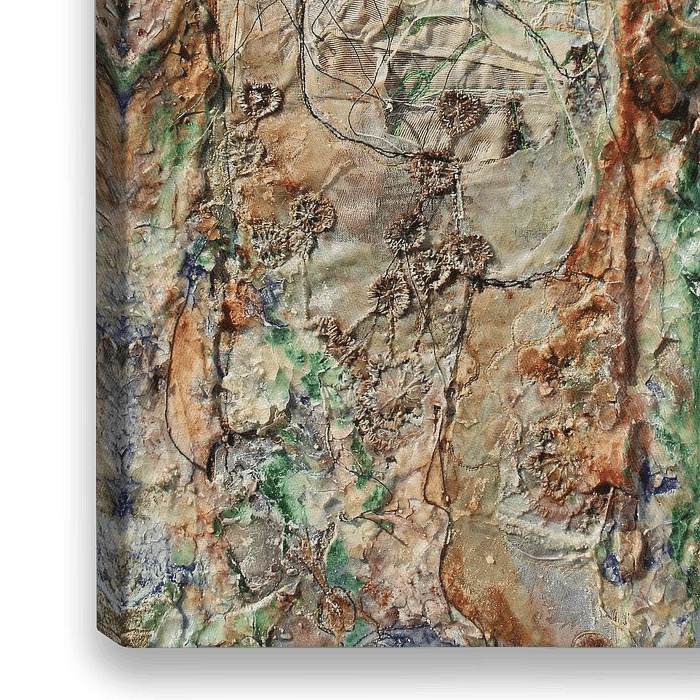 Een werk van een moeder & kind. Door het gebruik van vele verschillende materialen heeft het werk het uiterlijk van een sculptuur. Het werk heeft een emotionele lading en met zijn organische vormen heeft het werk de sfeer van de natuur.