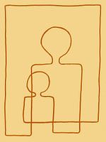 Mother and Child komt uit de serie, familie-lijntekeningen. Deze tekening geeft de bijzonder sterke verbondenheid van ouder en kind weer. Deze twee personen zijn verbonden door één lijn wat de krachtige band nog meer benadrukt.