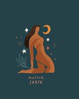 Illustratie: Mother earth tegen een donkergroene achtergrond. Voor natuurliefhebbers.