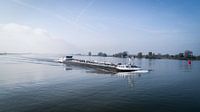 Bekijk dit prachtige binnenvaartschip varend op de rivier de Waal. De luchtfoto van dit motortankschip is genomen ter hoogte van de nederlandse biesbosch. De naam van het schip is: Company