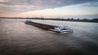 Bekijk dit prachtige binnenvaartschip varend op de rivier de Waal. De luchtfoto van dit motorvrachtschip is genomen ter hoogte van de nederlandse biesbosch. De naam van het schip is : Aquapolis