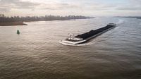 Bekijk dit prachtige binnenvaartschip varend op de rivier de Waal. De luchtfoto van dit motorvrachtschip is genomen ter hoogte van de nederlandse biesbosch. De naam van het schip is : Avila