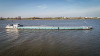 Bekijk dit prachtige binnenvaartschip varend op de rivier de Waal. De luchtfoto van dit motorvrachtschip is genomen ter hoogte van de nederlandse biesbosch. De naam van het schip is : Decibel