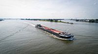 Bekijk dit prachtige binnenvaartschip varend op de rivier de Waal. De luchtfoto van dit motorvrachtschip is genomen ter hoogte van de nederlandse biesbosch. De naam van het schip is : Moonlight