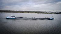 Bekijk dit prachtige binnenvaartschip varend op de rivier de Waal. De luchtfoto van dit motorvrachtschip is genomen ter hoogte van de nederlandse biesbosch. De naam van het schip is : Sophie Deymann