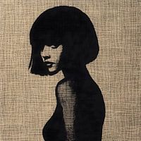 Abstract zwart-wit silhouet van een stijlvolle, mysterieuze Française.