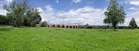 De middeleeuwse brug over de rivier l'Allier naar Moulins. De stad die bekend is vanwege het Moulins rundvlees.