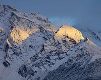 Vroeg in de ochtend licht benadrukt de pieken op Mount Bonpland, Nieuw-Zeeland