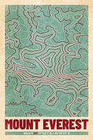 De Mount Everest in de Himalaya als een topografische kaart. Retrostijlkaart met hoogtelijnen. Stijlvolle print voor wandelaars, bergbeklimmers en outdoorfans - ook als cadeau-idee!