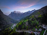 Deze foto is genomen in de Dolomieten in de Italiaanse Alpen. Sereen uitzicht gefilmd met een DJI Mavic 3 Pro.