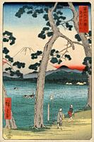 Mount Fuji links van de Tōkaidō, uit de serie Zesendertig uitzichten op mount Fuji van Edo, Utagawa Hiroshige (1797 - 1858) Edo, vierde maand 1858. Prachtige afbeelding van de rijstvelden bij de berg Fuji.