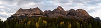 Mount Wilson is een bergtop van 3.260 meter (10.696 ft) in de North Saskatchewan River-vallei van Banff National Park, in de Canadese Rockies van Alberta, Canada. Een hoge resolutie panorama tijdens zonsondergang, met herfstkleuren in de bomen.