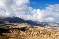 Een vergezicht vanaf de zijderoute in Kirgizië komende vanuit Kazachstan en op weg naar het Issyk Koel meer in Kirgizië.