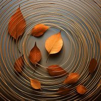 Herfstbladeren weggezet in cirkels, die de beweging van tijd symboliseren. Herfst komt en gaat. Bladeren vallen en bladeren ontstaan. Abstracte compositie van organische vormen en materialen. Passend bij diverse stijlen en trends, waaronder natuurlijk herfst. Bruingrijze kleurstelling.