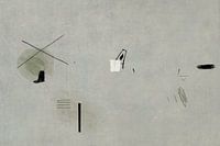 A masterpiece that harmonizes Symbolic Abstraction with Poetic Landscapes. The canvas is anchored by a vast expanse of warm, gentle grey, representing an inclusive and serene space-time. Scattered across the field are minimalist elements functioning like musical notes: on the left, a pale green circular patch is overlaid with sharp…