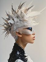 Modefotografie Portret van een vrouw met witte glitter mohawk