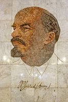 Mozaïek portret van Vladimir Lenin in een metrostation in Moskou, Rusland, Europa