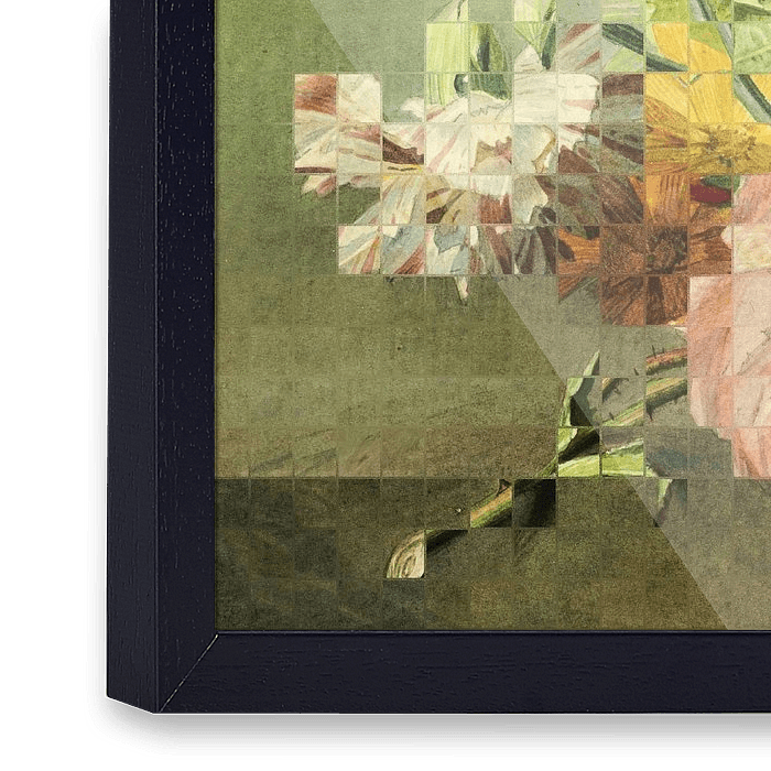 Een schilderij van een stilleven, gemaakt door Georgius van Os, maar dan als mozaïek. Past zowel in een modern als een klassiek interieur.