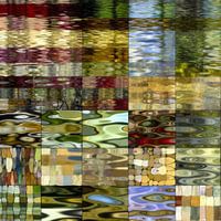 Een kunstzinnige weergave van reflectie op water, waarbij de originele beelden vervormd zijn tot golvende en overlappende kleurrijke patronen die de illusie van beweging creëren. De beelden zijn onherkenbaar, wat staat voor de complexiteit en soms de ondoorgrondelijkheid van onze gedachten en percepties.
