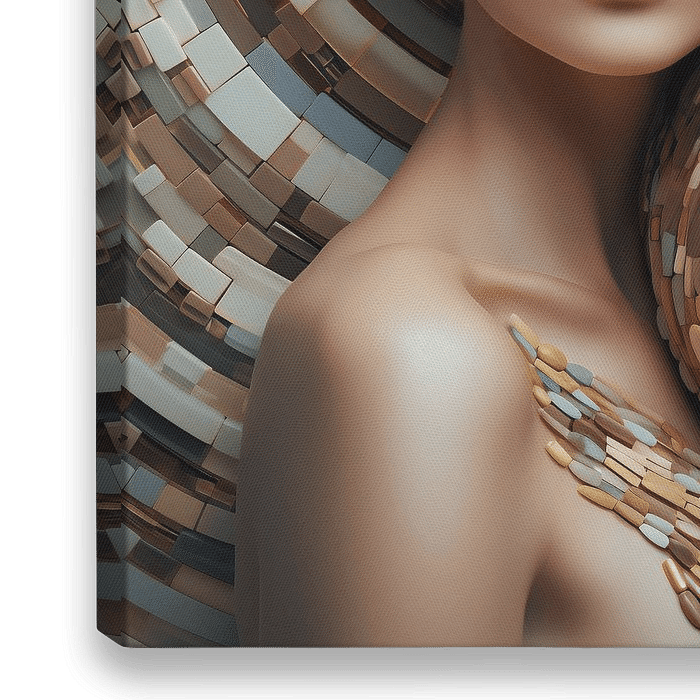 Fantasie portret in lichte aardetinten met mozaïek patroon.