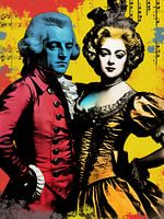Deze briljante popartcollage katapulteert barokke elegantie naar de 21e eeuw. Warhols zeefdrukesthetiek ontmoet historische portretten - Mozart wordt een rockster, zijn muze Madonna een diva. De felle neonkleuren en fragmenten van bladmuziek creëren een anarchistische dialoog tussen hoge cultuur en straatkunst. Een provocerend meesterwerk voor liefhebbers van culturele tijdreizen met een subversieve twist.