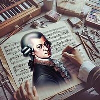 Koop dit portret Mozart op tafel van Digital Art Nederland op canvas, aluminium dibond, (ingelijste) fotoprint, behang en ArtFrame, op maat geprint in Fine-Art kwaliteit.
