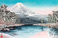 Mt. Fuji vanuit Tagonoura, sneeuwscène (1932), prent van Hiroaki Takahashi. Origineel uit het Los Angeles County Museum of Art.
