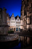Tussen geschiedenis en rust: deze foto toont de Prinzipalmarkt in Münster in het zachte licht van het blauwe uur. De historische huizen met puntgevels, de kathedraal en de rustige fontein vormen samen een harmonieus stadsportret dat traditie en tijdloosheid uitstraalt.