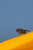 Ik noem deze foto ook wel De Muggenschans. Het mag duidelijk zijn waarom. De strakblauwe lucht en de felle kleur geel, maken van deze foto echt een zomerfoto. Het contrast knalt goed, maar geeft de mug wel ruimte om ook te shinen. De details van het beestje zijn goed te zien tegen het blauwe en de facetten van de ogen geven een mooie glans. De zelfverzekerde houding van de mug maakt deze foto helemaal af. Haal de muggenschans in huis en geniet van de kleuren en de details!
