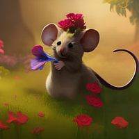 Muis in de bloemenweide. Muis nit scenario's gemaakt met AI en beeldverwerking over het jaar en de seizoenen.