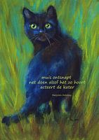 Hier is het aquarelschilderij aangevuld met de haiku in het Nederlands. In mijn portfolio zit ook een variant met het gedicht in het Engels (zie album 'Haiku and Painting English'). Het schilderij is ook beschikbaar zonder tekst (zie album 'Cats').