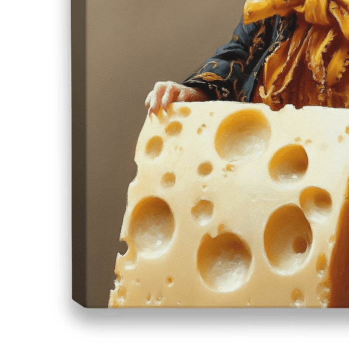 Koop dit portret Muis portret met een stukje kaas van But First Framing op canvas, aluminium dibond, (ingelijste) fotoprint, behang en ArtFrame, op maat geprint in Fine-Art kwaliteit.