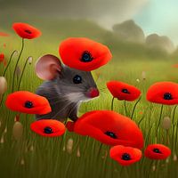 Muis tussen klaprozen Muis nit scenario's gemaakt met AI en beeldverwerking door het jaar en de seizoenen heen.