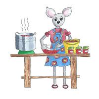 Koop de illustratie Muis vrouw kookt jam van fruit van Ivonne Wierink op canvas, aluminium dibond, (ingelijste) fotoprint, behang en ArtFrame, op maat geprint in Fine-Art kwaliteit.