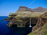 Wie naar de Faröer eilanden gaat, komt ongetwijfeld vroeg of laat bij deze waterval. Mulafossur is één van de bekendste bezienswaardigheden van deze eilanden. Wij waren er op een mooie, heldere dag, wat vrij zeldzaam is daar. Het leverde deze zonnige foto op.