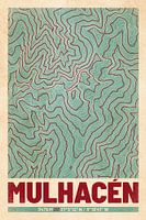 De Mulhacén in de Sierra Nevada in Spanje als topografische kaart. Retrostijlkaart met hoogtelijnen. Stijlvolle print voor wandelaars, bergbeklimmers en outdoorfans - ook als cadeau-idee!