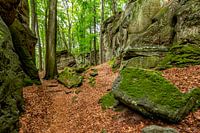 Ruige en puur natuurlijke landschappen op de Mullerthal Trail, Luxemburg.