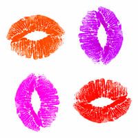 Pop art afdruk van een zoen in verschillende kleuren lippenstift.