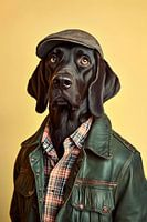 Een stijlvolle Munsterlander met een charmante hoed en een nonchalant leren jack trekt ieders aandacht. Zijn oplettende ogen en zelfverzekerde uitdrukking geven hem een onmiskenbaar karakter. In al zijn pracht en praal laat hij zien dat hij niet alleen een trouwe metgezel is, maar ook een echte trendsetter.