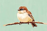 Een schattig vogeltje met zachtbruine tinten en een wit buikje zit vredig op een tak. Zijn nieuwsgierige blik en zachte contouren geven de kamer een harmonieuze uitstraling. Dit kunstwerk is perfect voor de woon- of slaapkamer en brengt een frisse, natuurlijke sfeer in huis.