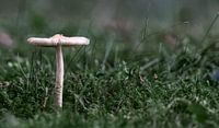 Macrofoto van een paddestoel in het gras.