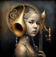 Surrealistisch portret van een muzikaal meisje.