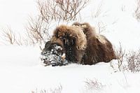 Muskox in diepe sneeuw in Dovrefjell-Sunndalsfjella Nationaal Park Noorwegen