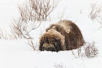 Muskox in diepe sneeuw in Dovrefjell-Sunndalsfjella Nationaal Park Noorwegen