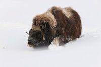 Muskox in diepe sneeuw in Dovrefjell-Sunndalsfjella Nationaal Park Noorwegen