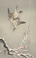 Mussen en besneeuwde pruimenboom van Ohara Koson uit de oude meesters collectie
