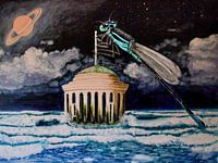 Dit werk, dat ook al de titel „ "Ver-rückt "bekannt ist,zeigt eine riesige Libelle,die sich auf einem versunken Tempel nieder gelassen hat. Es scheint, als sei sie die einzig überlebende in einer Welt ,in der so einiges aus dem Ruder gelaufen ist. Also eine Welt, die sozusagen "ver-rückt "“ draagt. Dit valt ook te verklaren doordat…