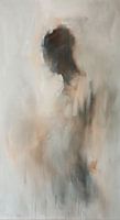 Vervaagd olieverfschilderij van een vrouw in verwachting van haar kindje. Aardse zachte tinten, vervaagd. Vol verwondering. Modern Abstract. Artist: Bianca ter Riet